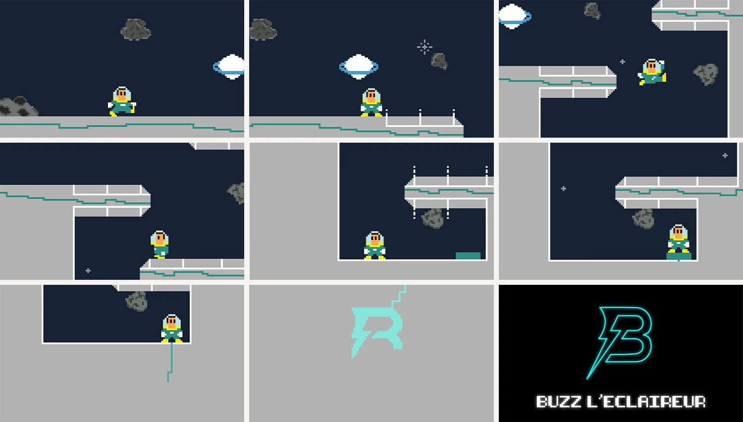 Inspirée par les jeux rétro, j’ai voulu créer un spot introduisant le personnage fictif « Buzz l’Éclaireur ».